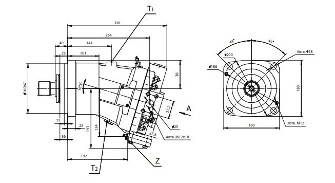 аксиально-поршневой гидромотор с наклонным блоком - угол наклона блока цилиндров 25º – 28º