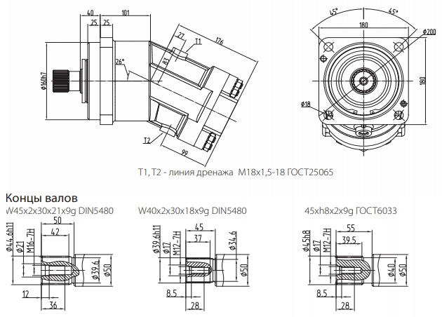 • Диаметр вала: 45 мм