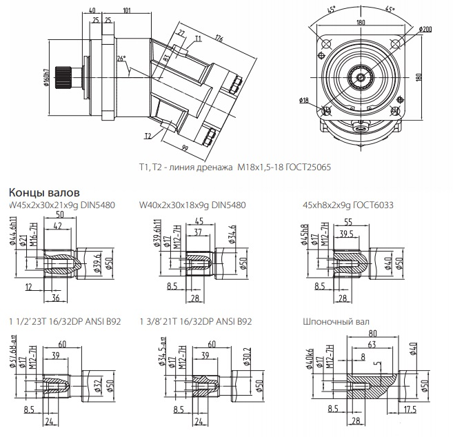 • Исполнение вала: шлицевое, реверсивный