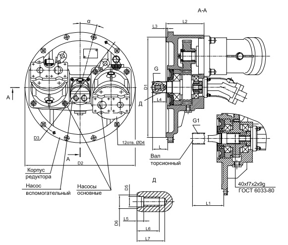 • Исполнение вала: внутренние шлицы под торсионный вал